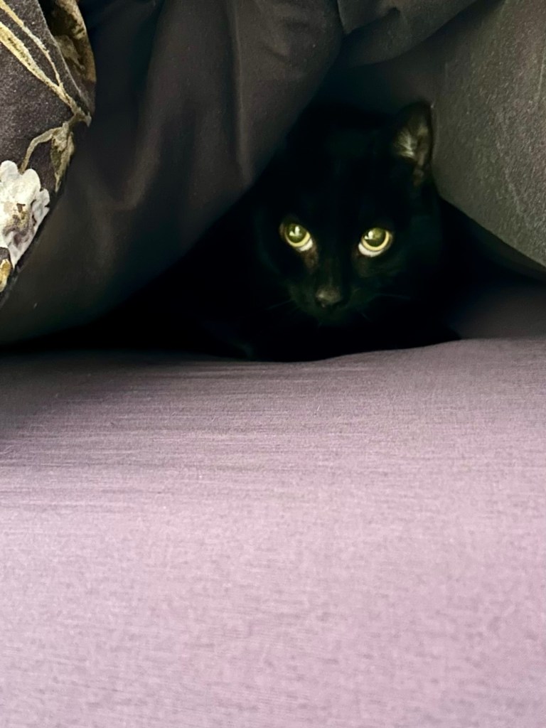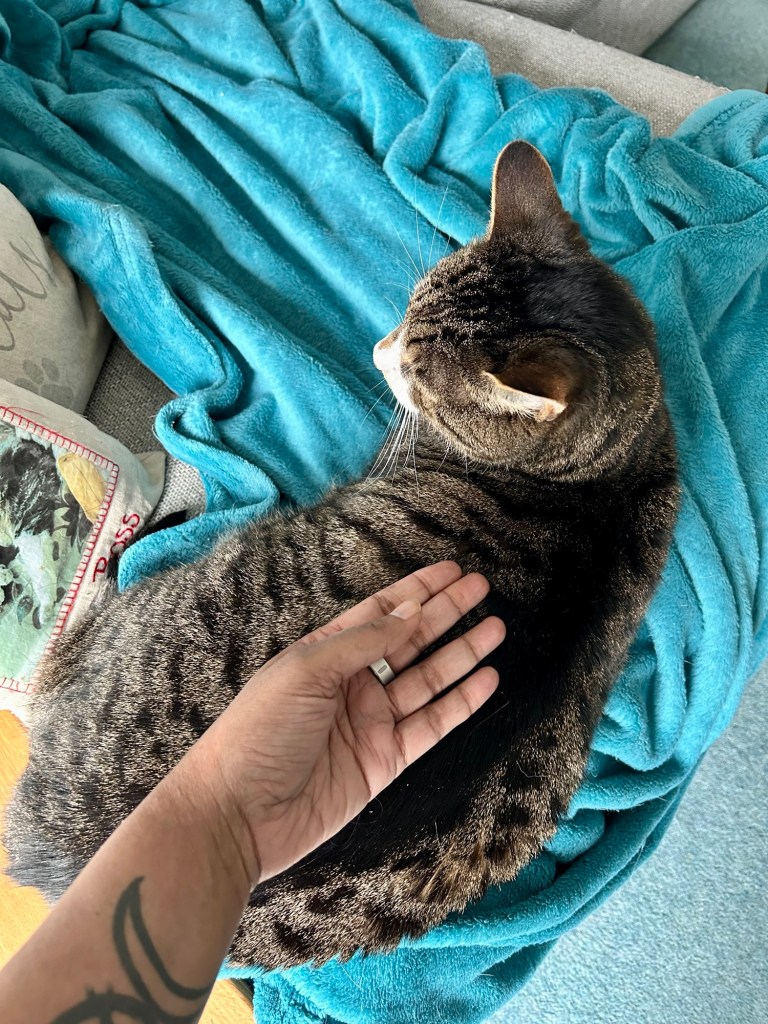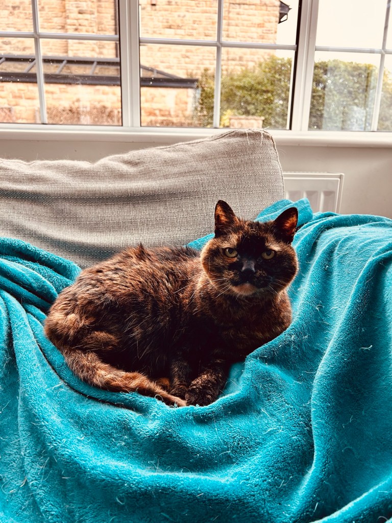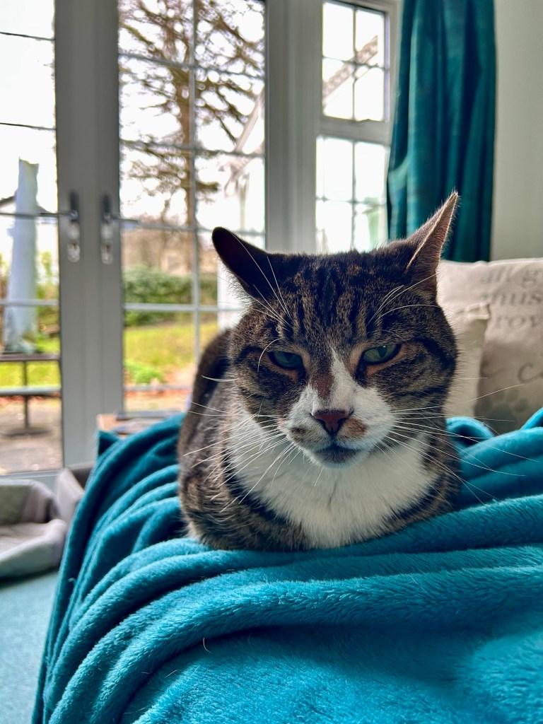 Their sister Snoodle was a little shy and spent much of our visit under cover, so it was quite difficult to see exactly how big she was. But when she dashed out from under one blanket to seek a second hiding place beneath another, we gasped, “She’s quite a meaty girl!” Nope. 5kg makes her also a Normal Cat.