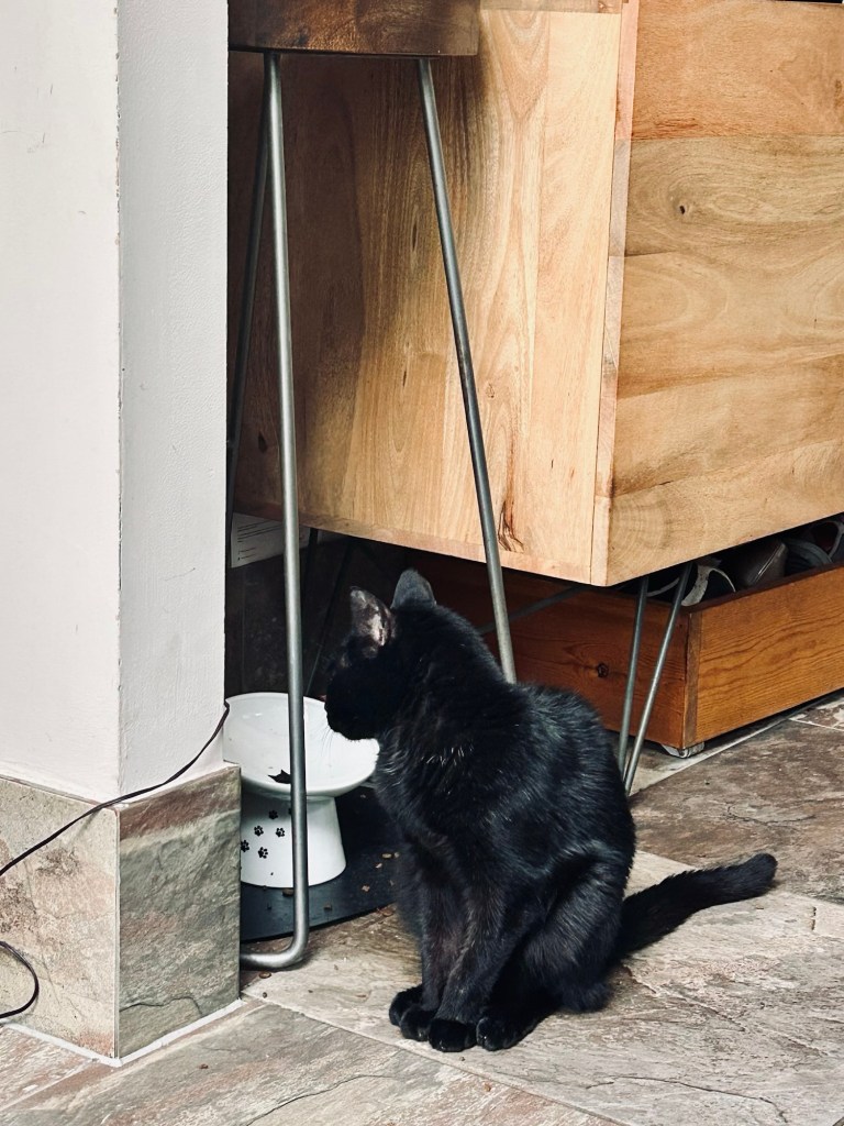 Anyway, since reintroducing The Cool Cat Club’s wet food, every breakfast time is a cacophonous scream-fest. The little sod chugs down what he’s given, then creepy-stares for more. Whilst it’s tempting to give in indefinitely to avoid the bullying and intimidation, I think three quarters of a can is probably about the right serving size, and we’ll be aiming for that once the novelty wears off.
