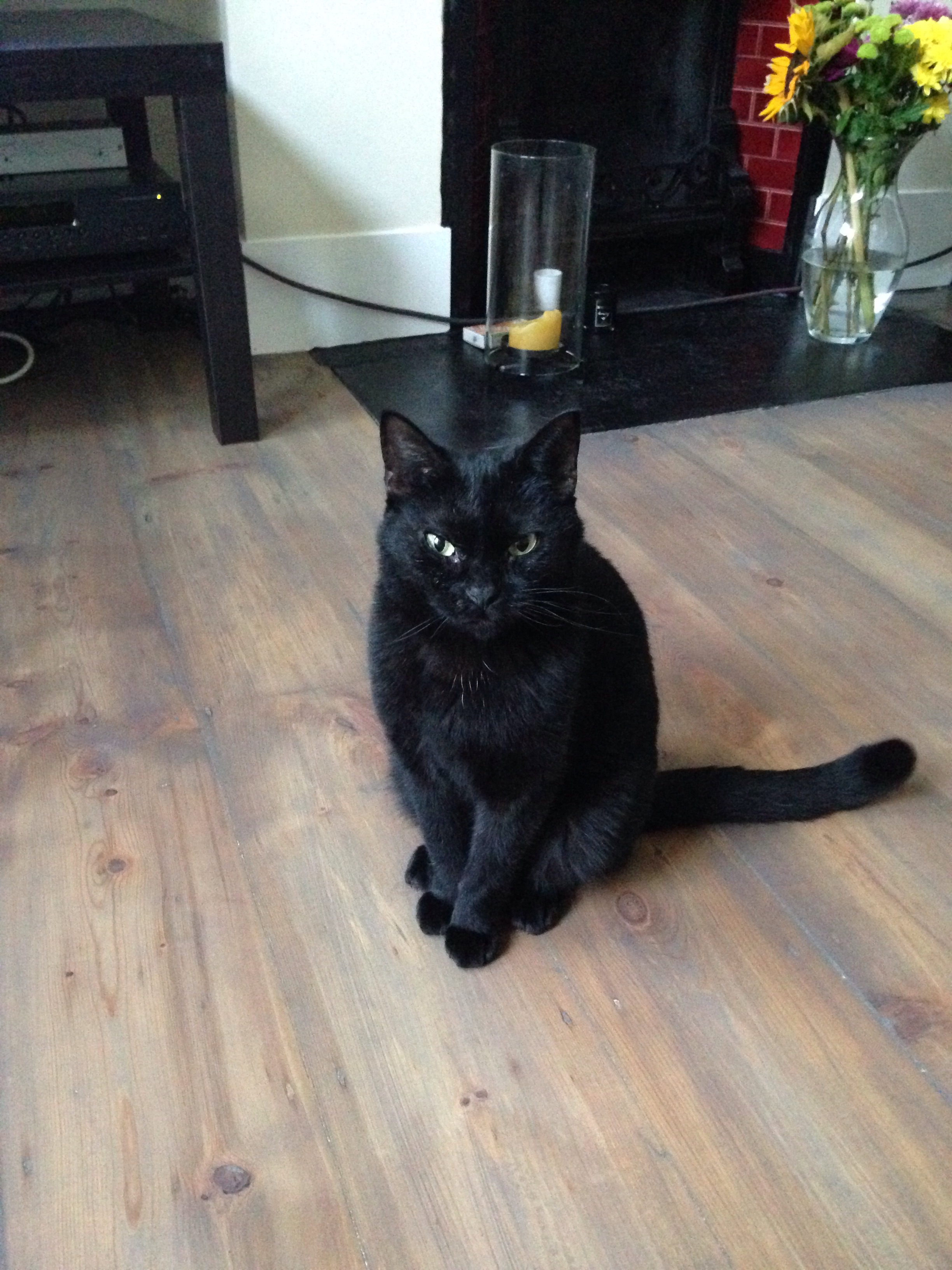 Cat Daddy snorted with laughter at the idea of our boy becoming a sort of latter-day Notre Dame/Seigneur de Lourdes, and said, “He’s a scraggy, black runt! What POSSIBLE benefit could anyone reap from coming to see him?” Well, the fact is they continue to come; we have 2 more visits lined up next month, and I daresay there will be more after that. If people can be so inspired by an unremarkable-looking, special needs black cat, I see that as a major coup in the battle against black cat prejudice which currently sees them as the least popular and last-picked of all cats.