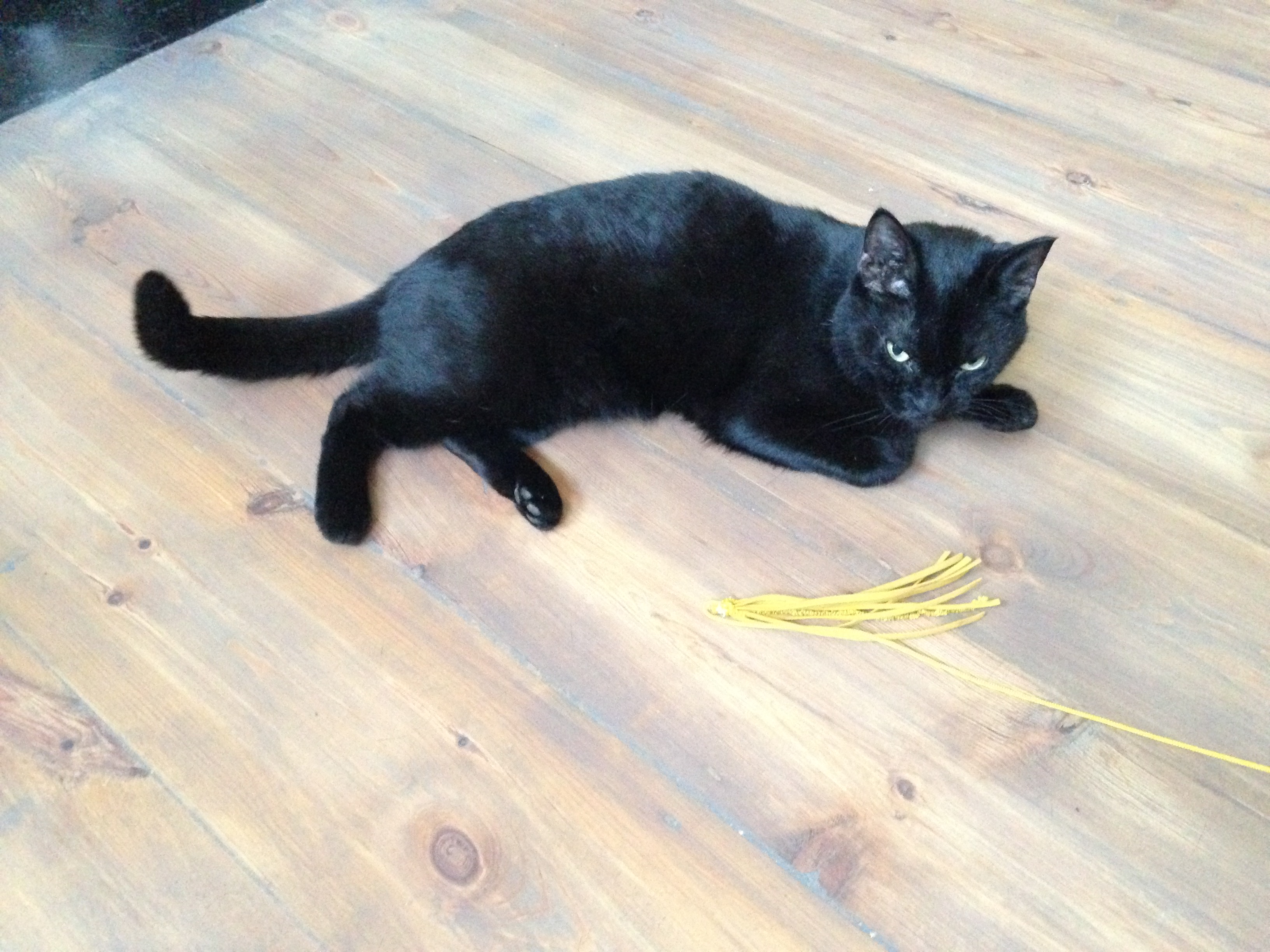 My boy is looking unbelievably good, with his fight wound (not pictured here as this photo is pre-fight) now looking less like the Eye of Sauron and more like an Indian bindi, and he’s got his little black cat mojo back: he’s affectionate, chirpy and full of beans. Sadly he’s also annoying the crap out of us with the noisy play fuelled by his new-found energy, which starts cranking up just as we’re going to bed and peaks between 3am and 4am. Cat Daddy is so ticked off with him that he’s threatening to shut him out of the bedroom, but he’d only yowl to get in and/or find some bubble wrap from somewhere to make enough noise from elsewhere in the house.