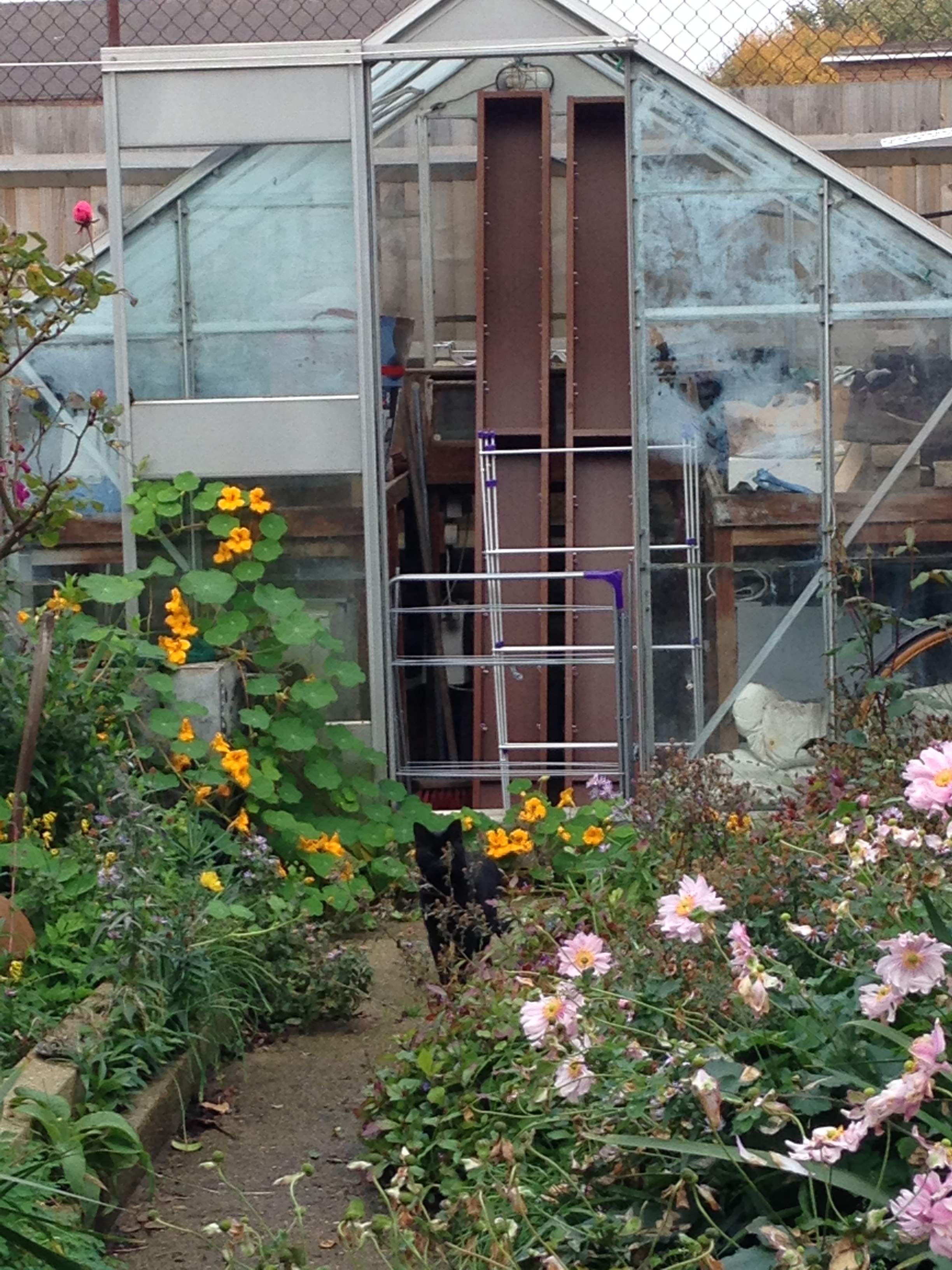 So, with the Forbidden Greenhouse inaccessible, he’s given up hiding in there and is happily washing his arse on a clean, anti-allergy bed, safe from dust, fireworks and marauding adolescents. My Halloween will certainly be happier knowing that he’s out of mischief. Hope you all have a wonderful day, and that your furry overlords and overladies stay safe tonight.