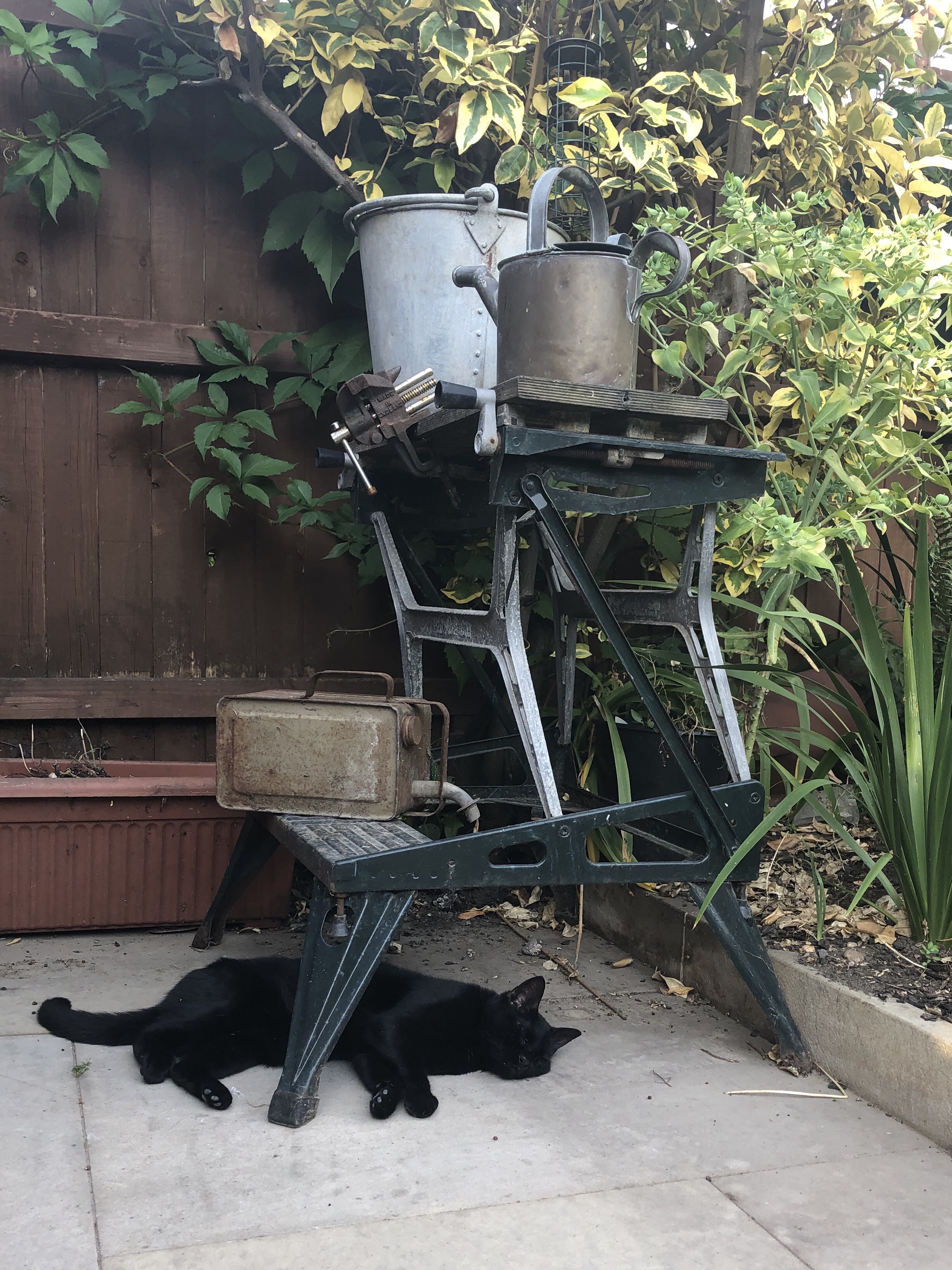 Anyway, despite the drama, Sa Maj now has a new friend. And it seems that there was a reason for the screaming other than just to greet Basil: I later discovered that the little sod had brought a mouse (his second of the day) and left it in the place from where his distant screaming had originated. And that place happened to be right in the middle of Lee’s route from The Front to his tile-cutting machine at The Back, so he absolutely had to have seen it.