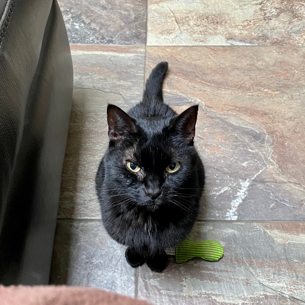 When he asks for more food – a new thing since the steroids because, prior to that, he didn’t care much for food – things are very different. Hungry Catorze will find me wherever I am (never Cat Daddy, always me) and sit and stare. Most cats scream for food, but I guess the issue there is that he screams so often, for so many reasons or for absolutely no reason whatsoever, that we would never succeed in narrowing down what he wanted.