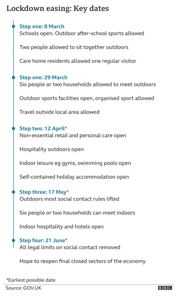 In other news, we are now in the next phase of the “road map” announced by our esteemed leader in late February for easing Covid restrictions in England. Non-Brits: in case you’re wondering, “road map” in this context just means “list of stuff that’s going to happen”. It’s not a map, and there aren’t any roads in it. We don’t get it, either. And, yes, we also think he should have just said “Here’s a list of stuff that’s going to happen”.