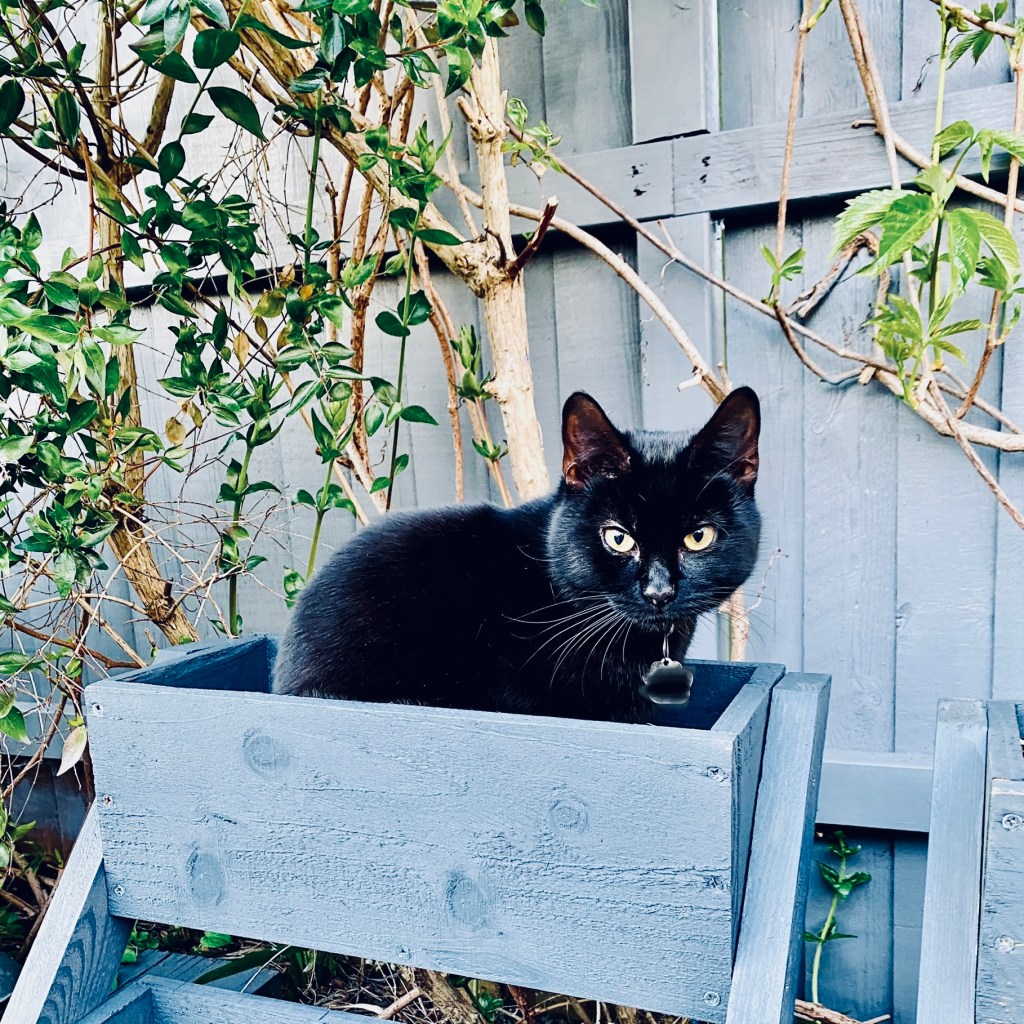 He has a perfectly lovely cat two doors away, who wants to be friends … but Sa Maj won’t have it! 🙄