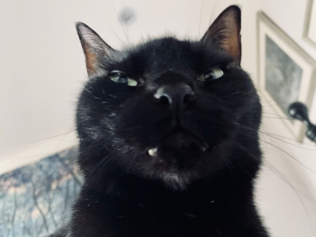 Catorze is, apparently, doing fine, and has not killed and eaten his chat-sitteur as yet. There was, however, a minor incident during which she heard his screaming and, believing him to be trapped somewhere, was opening doors and cupboards in an effort to locate him, but to no avail. Eventually she saw two creepy eyes staring down at her from the roof. Yes, the little sod had decided to climb up there and scream at her through the open skylight. No, we don’t know why.