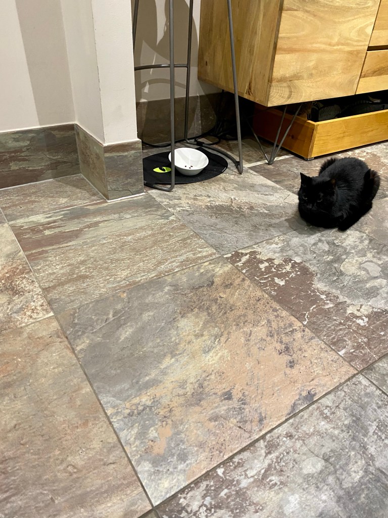 We are feeling both relief at the prospect of getting away from his nonsense for a couple of days, and moderate anxiety in case he plays up on her watch. Blue is a very easy cat to look after, with just dry food and water (plus the odd pigeon but, since he puts them under his mamma’s bed and cat-sitting duties don’t stretch to looking there, it’s her problem and not mine). Catorze is, erm, rather more complicated.