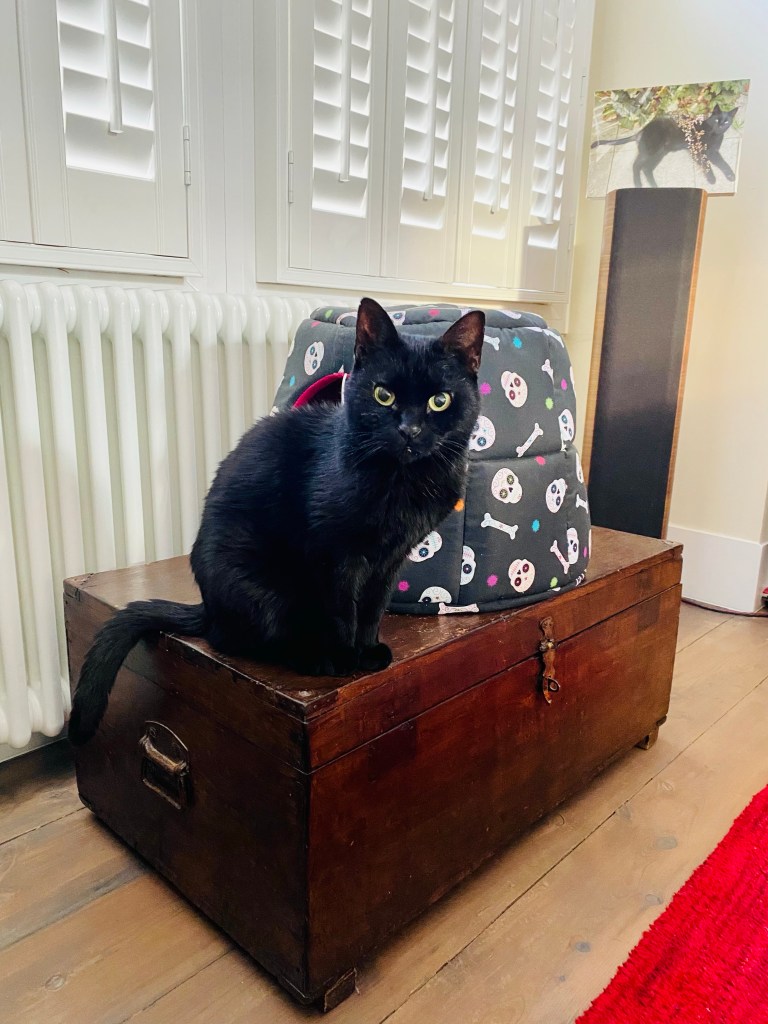 A couple of nights ago, the little sod was happily having a wash on the living room floor when he suddenly stopped, jumped up onto the shutters and started swishing his tail. Now, usually, when Catorze swishes his tail, it’s good news. (I know, I know, this is not remotely typical of normal cats, but that’s Catorze for you.) However, when his tail is swishing AND puffed, Armageddon is nigh. And that is exactly what we saw that night.