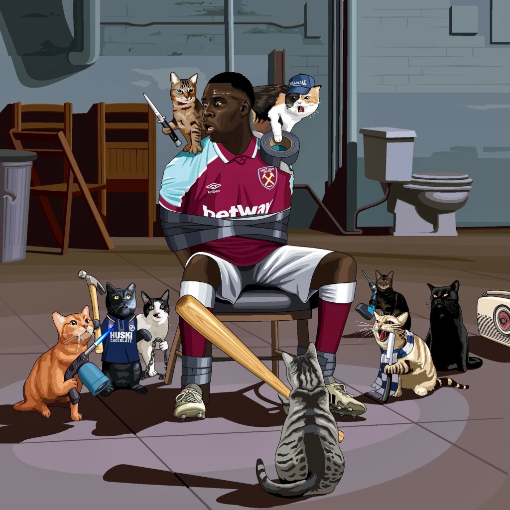 Cat Daddy and I weren’t able to watch West Ham’s match against Newcastle, other than a few snatched minutes in the pub with the sound off. As you may be aware, Louis Catorze happens to be a fan of Sunderland, whose local rivals are Newcastle, so under normal circumstances he wouldn’t want anything to do with them. However, the Newcastle fans turning up to the match armed with inflatable cats, and the story of Newcastle striker Chris Wood meowing at Zouma throughout, has made him warm considerably to his bitter enemies.