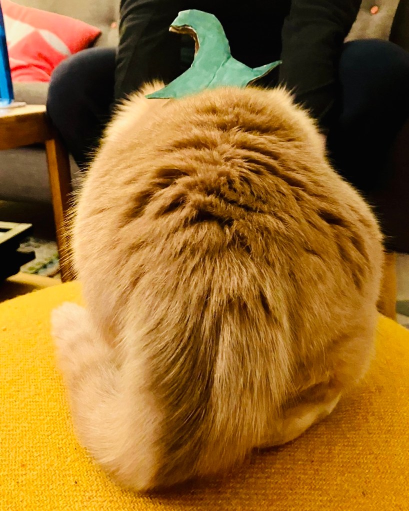 But, given the choice between a prize-winning Official Hallowe’en Portrait and a happy, healthy, lively Catorze, we would always pick the latter. We never thought he would be in such good form in October (when his skin problems usually resurface) and at the ripe old age of thirteen and, yet, here we are. He’s lively, noisy and alert, he’s chubbing up, and his fur is the softest it’s ever been. Either we are tremendously fortunate, or the Dark Lord is regenerating and will be at maximum strength in time for the apocalypse.