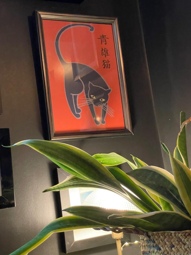 Whenever I see black cat things whilst out and about, I have to take pictures of them. On the way back from Scotland, Cat Daddy and I stayed in the Black Bull pub in Sedburgh, who serve a very imaginative Japanese-inspired tasting menu. Japanese people LOVE their cats, and on the wall was this delightful picture:
