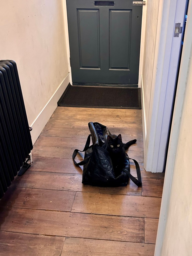 Catorze was glued to my side all through that night and the early hours of the next morning, which is something that hasn’t happened in a while. And, because I thought this was some sort of final adieu, I had a restless night’s sleep, constantly making sure that he was still breathing and that he wasn’t showing any signs of a fractured skull (not that I have the slightest idea what signs of a fractured skull looks like). But, the next day, Catorze was back to “normal” and up to his usual tricks of, erm, sleeping in a freezer bag, and drinking from our old wok which Cat Daddy put outside as a bird bath.