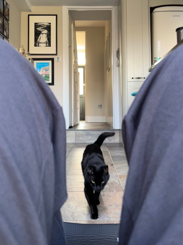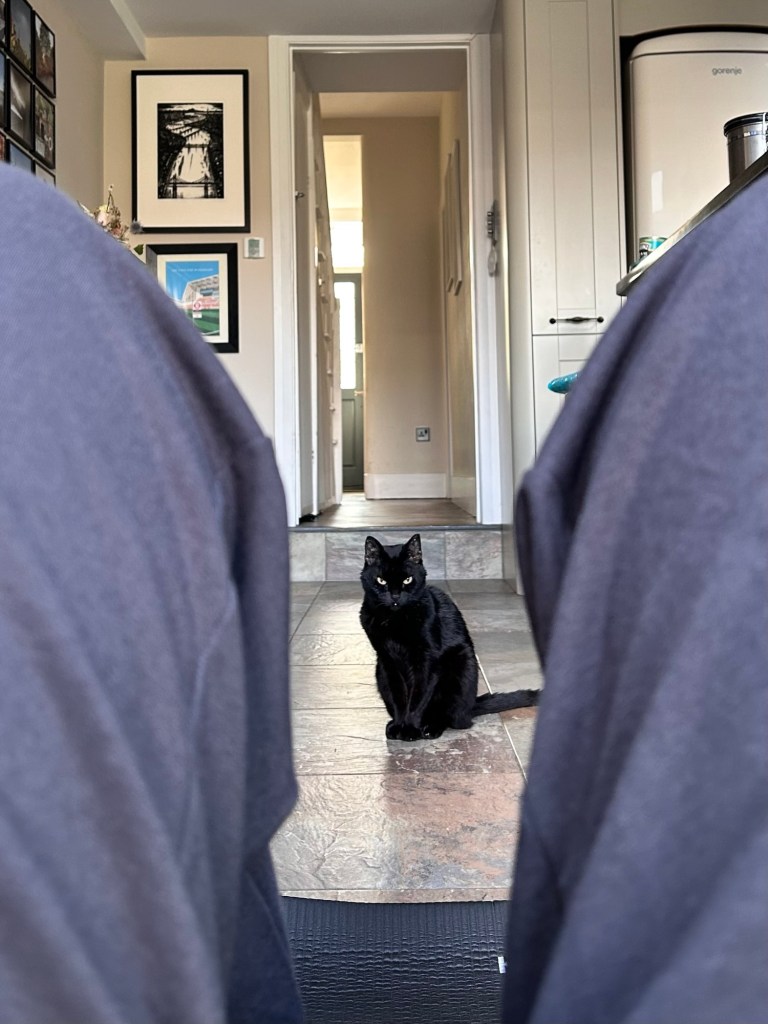 Because our house is so small, the only area large enough for me to do my morning workout is the kitchen. (Oui, Mesdames et Messieurs: despite Le Château’s grandiose name, it’s only really Château-y if you’re a tiny, 2.7kg cat.)