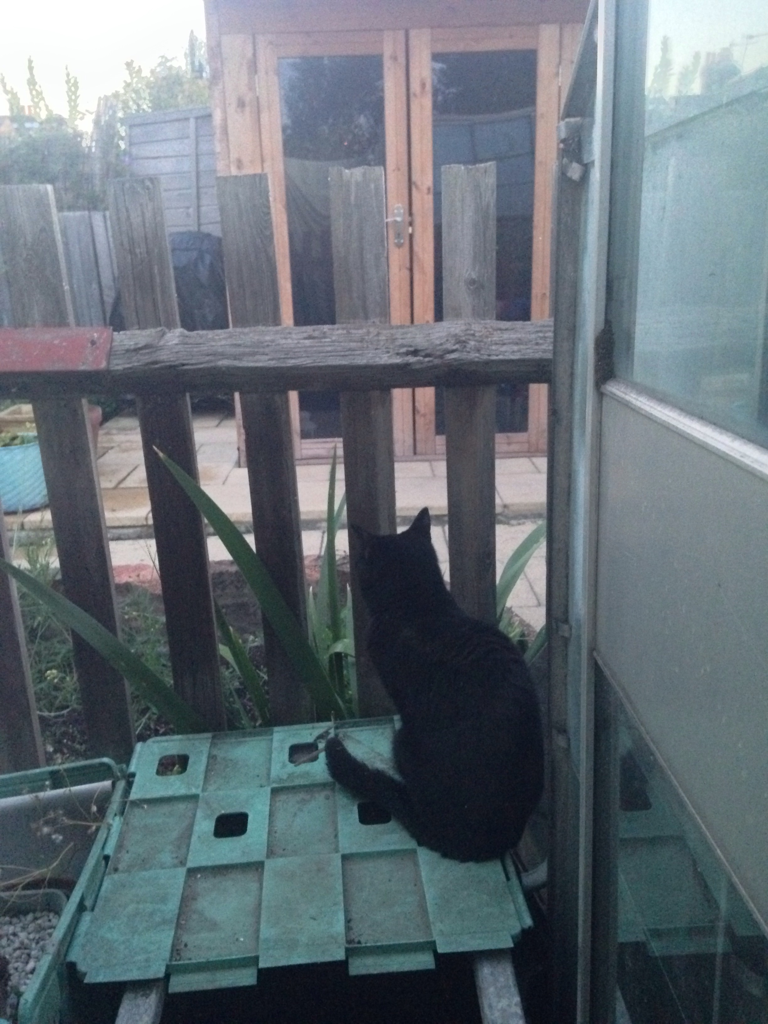 No, we haven’t shut him out, nor is he lost or disorientated and unable to find his way back. The cat flap is accessible, the back door is ajar and there’s nothing in the house which is scaring him away except, perhaps, for me. He has chosen, of his own free will, to sit in the flower bed, blink at the raindrops like a lunatic and get soaked. (No photo available because that would, of course, involve going out there myself, and I’m not going to do that.)