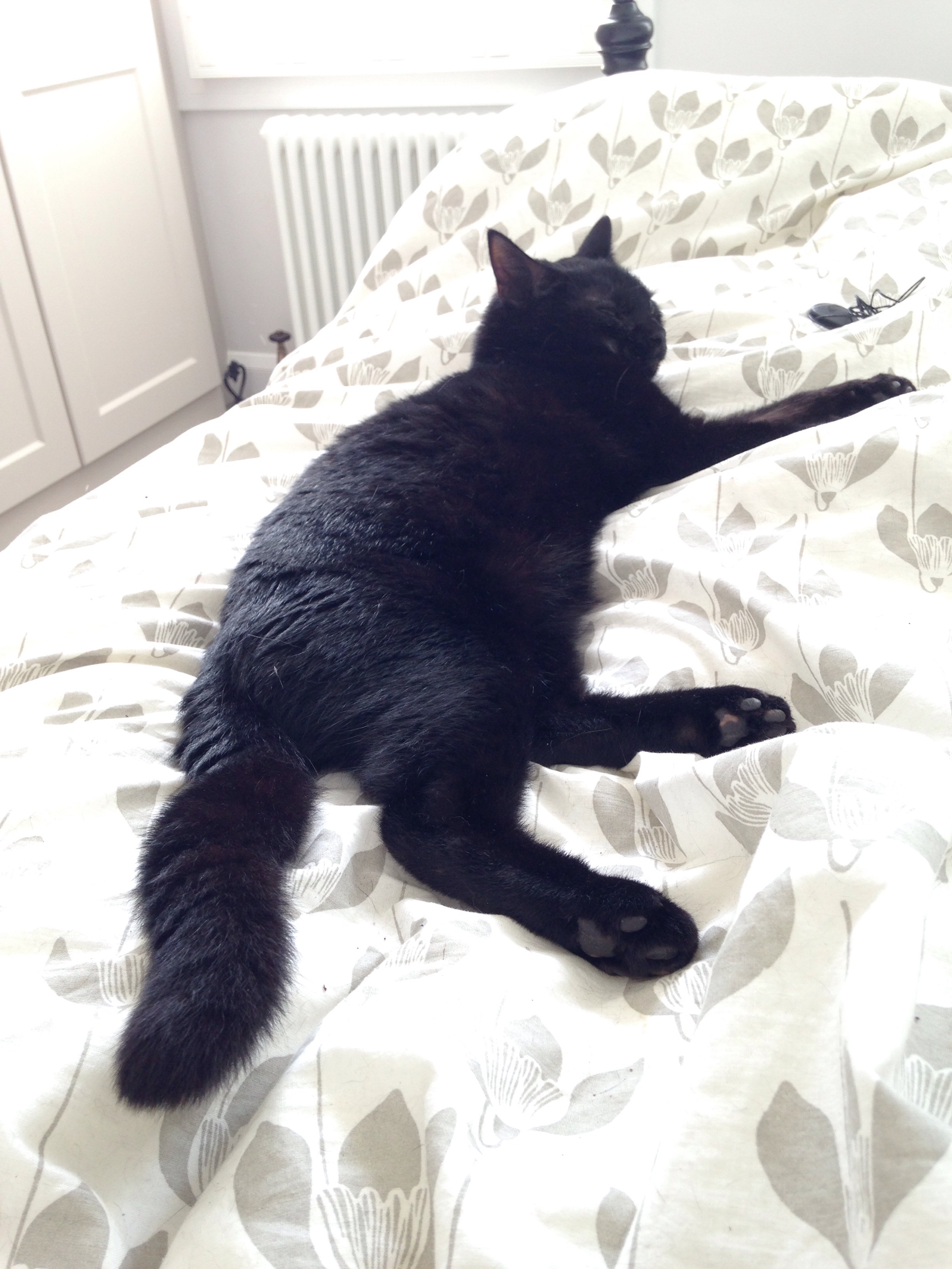 Although I’ve very much accepted that my cat isn’t normal, this behaviour really takes the gâteau. I can see the appeal of freshly-washed laundry, perhaps even cardboard boxes, but getting cold and wet when you don’t have to? WHY? Someone suggested that perhaps the rain was soothing on his sore skin, which is fair enough, but then why not stay out for just long enough to be sufficiently soothed and then come in? Why wait until you’re utterly drenched, come in shouting indignantly about it (even though it was your choice) and then rub your disgusting, wet body and muddy paws all over our bed?