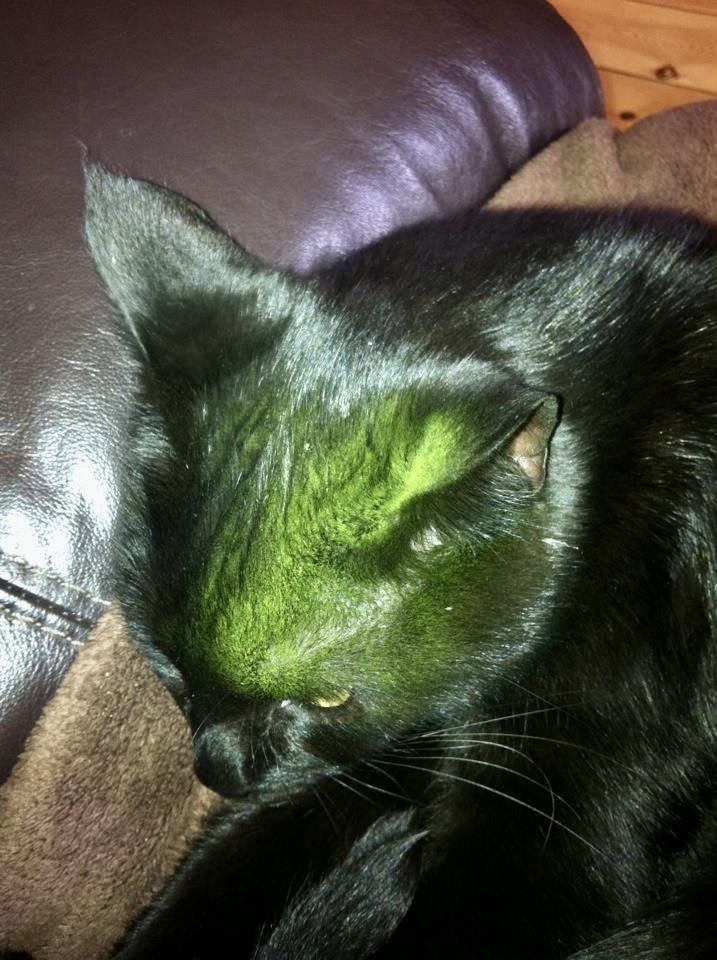 You’ll just have to imagine the sound: the standard cat puke warning signal as lead vocal, with a backing track of Eric Clapton.