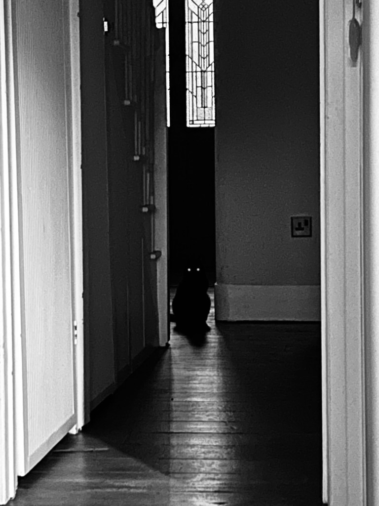 I suspect that the little sod had not long since wolfed down a bowl of food too quickly. But it’s funnier to think his hatred of the Discordant Instrument of Doom is such that it triggers his gag reflex.
