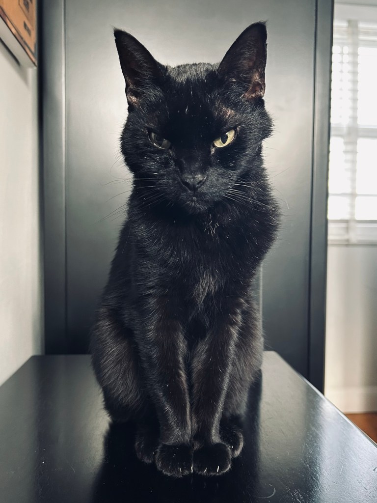 Louis Catorze, on the other hand, just looks black, although he can mix it up a bit by sometimes offering us, erm, black with a coating of unidentified garden crud. He’s not the glossy, velvety panther that most Chats Noirs are, but that’s just our lot in life and we have to accept it.