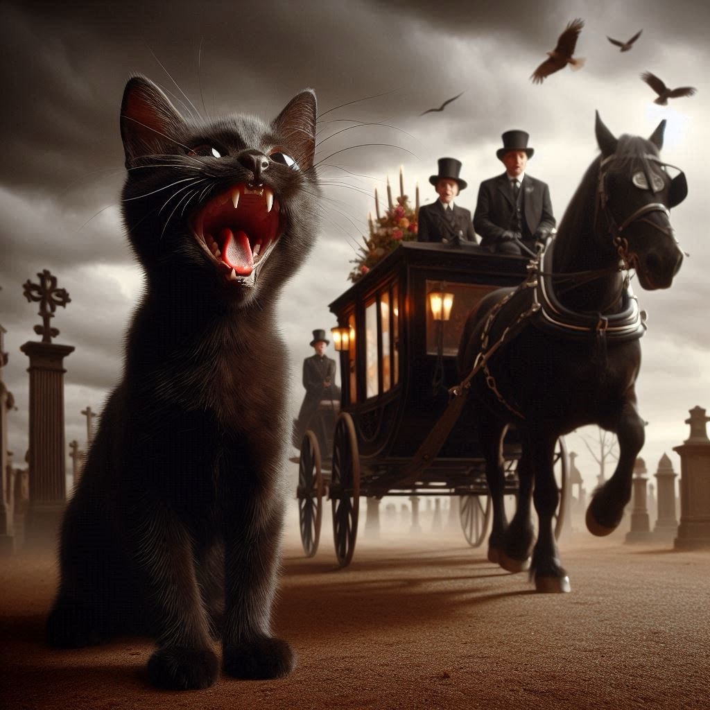 I told Cat Daddy about the horse incident when he arrived home just after my appointment. “Oh yes,” he said. “I saw them. There was a funeral in the church around the corner, and they had a horse-drawn hearse.”