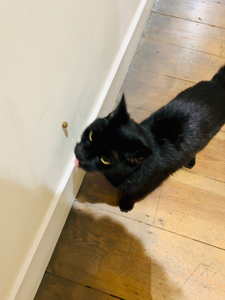 I heard the slurping noises but, because it was dark and I was engrossed in a film, I thought he was just having a wash. By the time I realised what was happening, two minutes had passed. He didn’t consume much overall but, for a cat of 3kg, it was probably the equivalent of doing a line of coke.