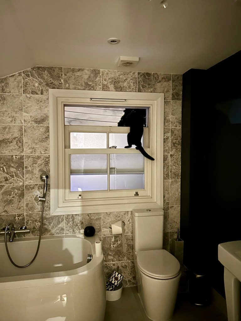 If you listen carefully, you can hear Cat Daddy saying, “It has a sauna as well”. Yes, he’s just out of camera shot, researching holiday lets for next summer. YES, ALREADY. Such is his haste to guarantee us at least a couple of peaceful weeks in 2025.