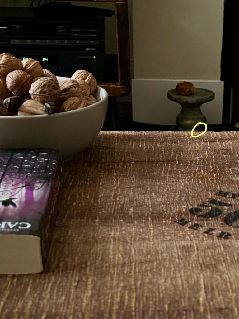 Try as I might, I wasn’t able to take a decent shot without the reflections in the glass, hence the wonky angle. And the mysterious turquoise orb managed to find me, too.