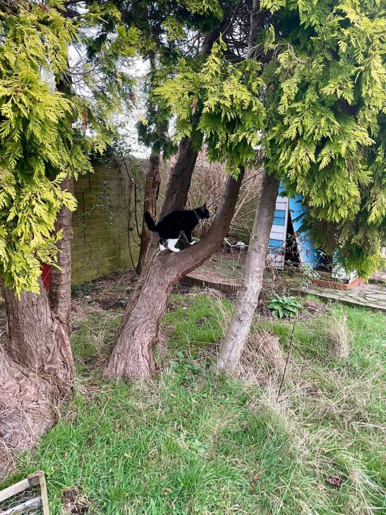 I told my sister to tape the cat flap open, gradually reducing the opening over time. When I’d tried to do this with Catorze, although it (eventually) achieved the desired result, the cat flap didn’t like being taped, so we propped it open with sticks of ever-decreasing length. Obviously, when Catorze or whichever random neighbourhood impinger came through, their arse would dislodge the stick, slamming the flap shut and trapping Catorze inside or outside (depending on who it was that had come in). So someone* would have to keep retrieving the stick and restarting the whole process.