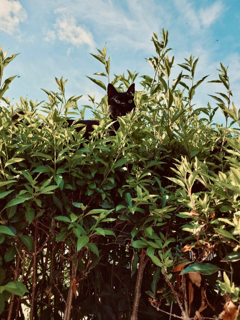 I looked, but was just too late. I peered at the other side of the hedge to see if the cat would come out but, a couple of seconds later, a black cat exited, shook himself down, then crossed the road.