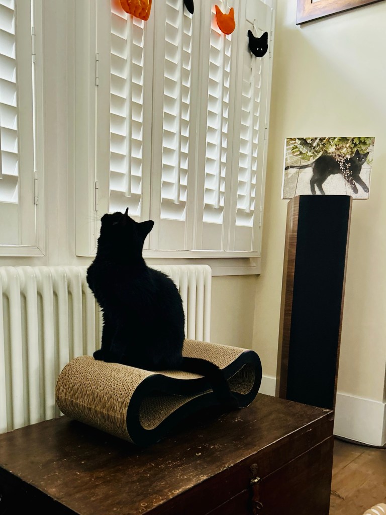 Catorze’s favourite lap (not mine) was free, his bowl was full, his water was topped up, he’d been out at The Front and we were already in his favourite room. We still don’t know what he wanted, and I can’t say we are looking forward to finding out.