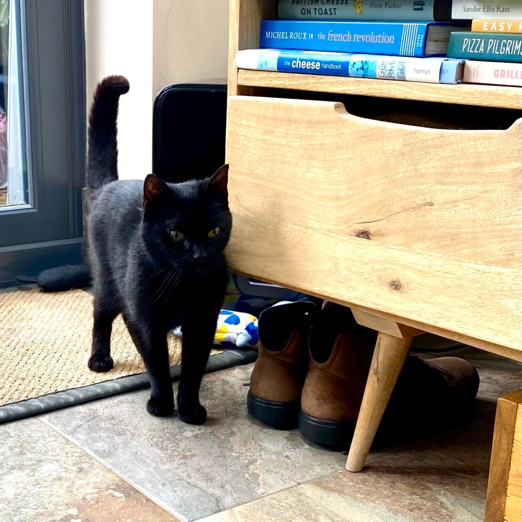 The first of these is relatively easy to answer: we suspect that Louis Catorze actually tried to get into the bin bag – I KNOW – and, in thrashing around inside, somehow rolled it across the floor and tipped it over. The thought of this repulses me to my very core because, that very morning, I cuddled the little sod in bed.