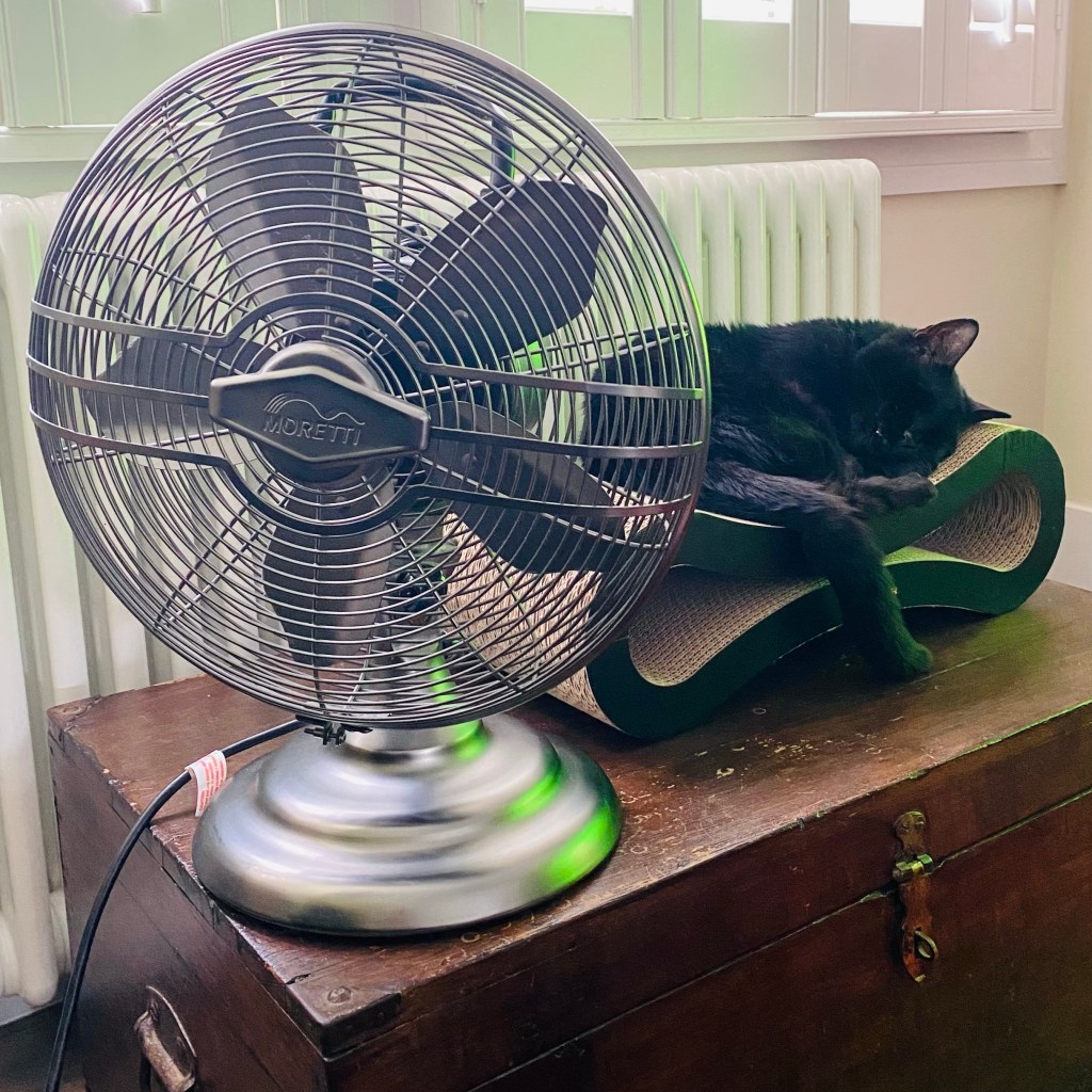 Now, since trying to put Catorze into his transportation pod for vet visits is quite the Herculean labour, I don’t imagine that putting him into a dryer would be any easier. And the vet visits are only once a month, whereas the storm gadding-about takes place whenever it rains, multiple times per downpour, and often through the night, too. Do I* fancy Greco-Roman wrestling Catorze into a dryer that many times a day/night? Non.