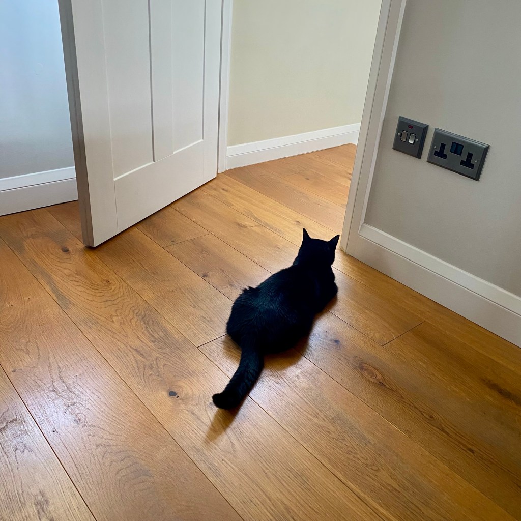Louis Catorze slept peacefully through the howling but, as soon as he heard a squirrel scuffling around outside, his head did that velociraptor-style whiparound and he was wide awake and alert.