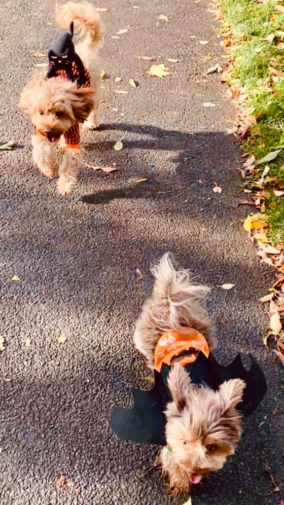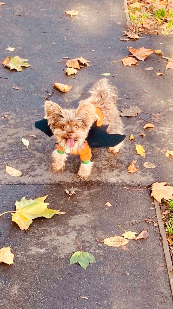 Here are some pictures of her, with her big sister Nala, taken last Hallowe’en. Unfortunately in no way do these help us to figure her out and, in fact, they only leave us with further questions.