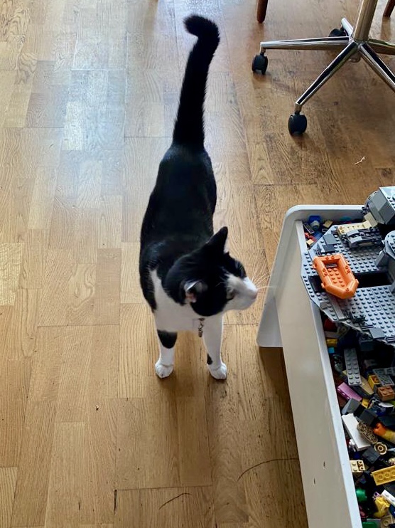 They are right about the trip hazard, too; Catorze would be weaving in and out of men’s feet, purring and rolling, if he were here.