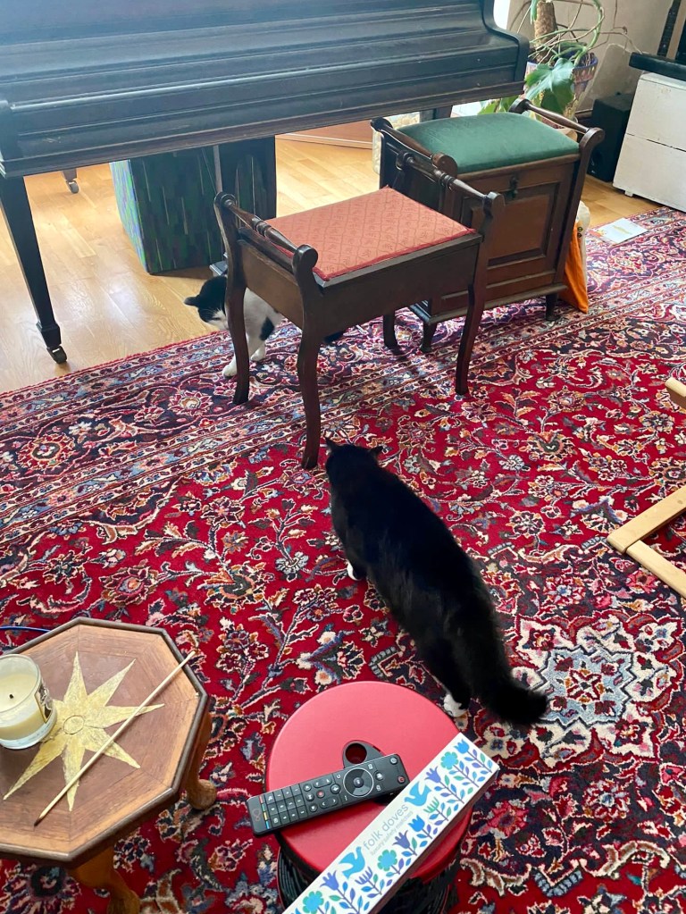 Meanwhile, back in London, these were the scenes at the château of Catorze’s cat-cousin King Ghidorah recently. Might I add that my sister and her family have one (1) cat: