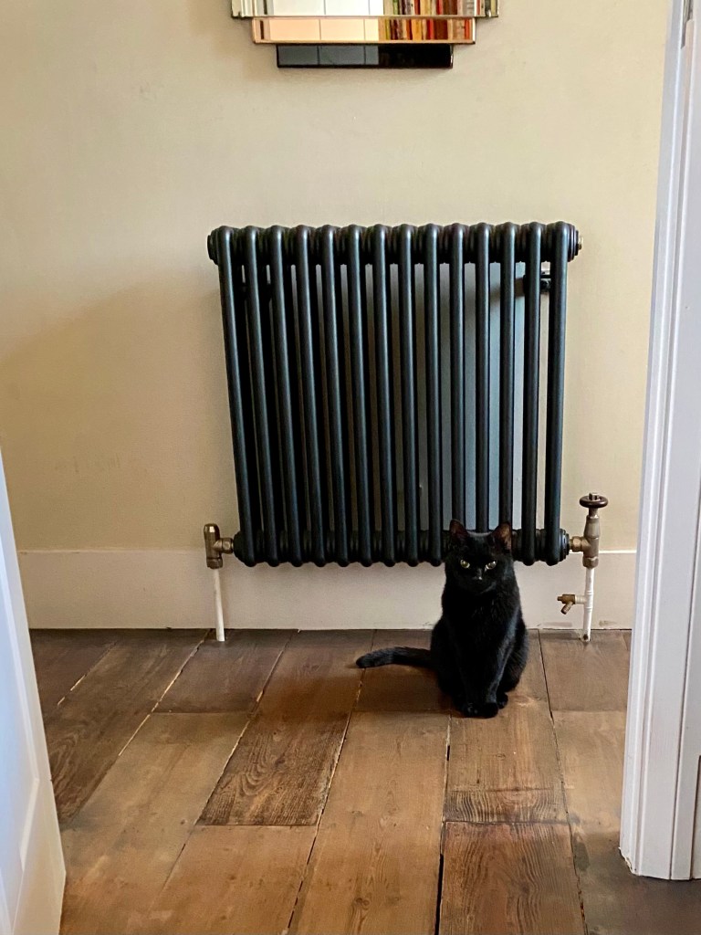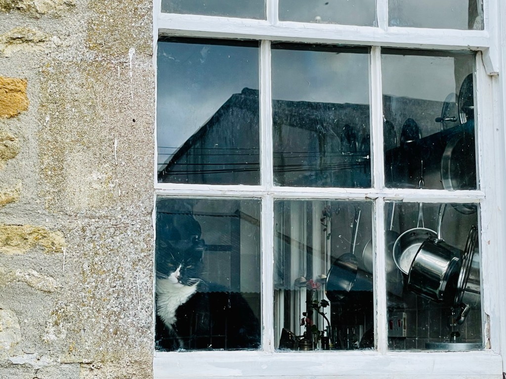After an excruciating journey full of traffic jams and detours, we arrived at our destination just in time to catch the pub before 9pm, when it stopped serving food. As we walked there we met a plushy little black cat, not much bigger than Louis Catorze, who squeaked at me and let me stroke her.