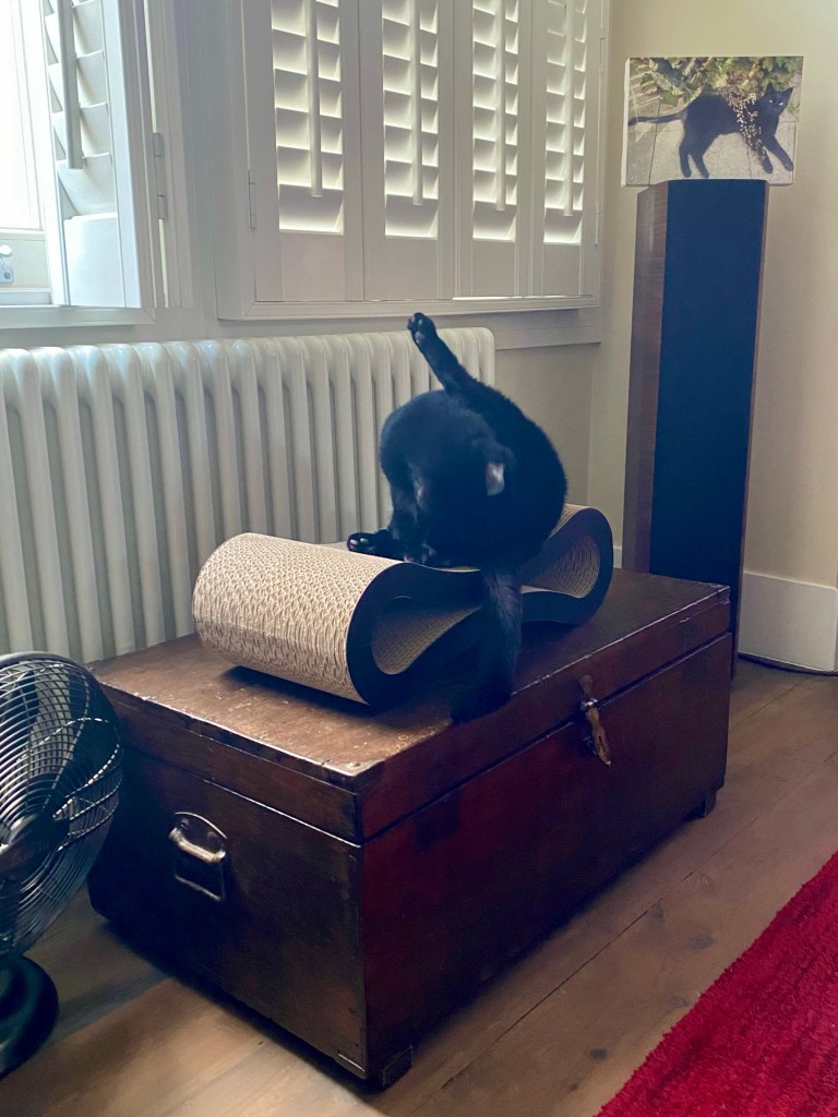 Anyway, after his initial bonjour/Привет, the little sod disappeared back upstairs and was gone for ages. It’s unusual for him to be absent at length at that time of the night, so eventually I went to look for him to make sure he hadn’t crawled under a bed and died of some horrific post-surgical complication.