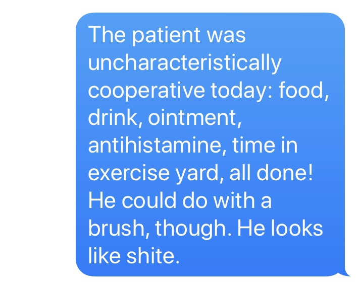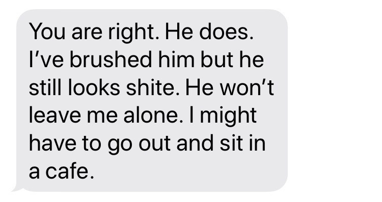 However – and there just has to be a “however”, doesn’t there? – his creepy, silent staring during our workouts is like having a passive-aggressive personal trainer who has such contempt for us that he can’t even be bothered to shout. Yet, just as I start wondering whether the yelly drill sergeant style might be preferable, Catorze proves his versatility by demonstrating that he can do that, too. When I do my sit-ups he pitter-patters around me, up-tailed and screaming like a fire engine. But, trust me, this is no emergency service coming to my aid: this is a great white shark circling his prey, hoping I will hurry up and die so that he can have Cat Daddy to himself.