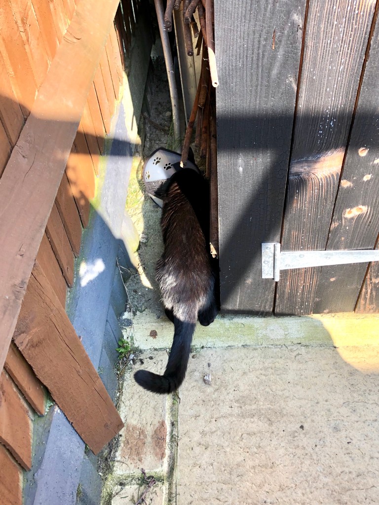 The whirring of Cat Daddy’s stationary bike and my clunking and stomping on the exercise step would scare off most cats, but Catorze happily sits and slow-blinks through it all. So he can be a part of our outdoor exercise experience, which is rather nice (at least in theory). He is mildly curious about the exercise equipment, but not excessively so; he is yet to stick his face into the spokes of the spinning bike wheel and have his whiskers chopped off, and I have only kicked him once whilst doing the step workout.
